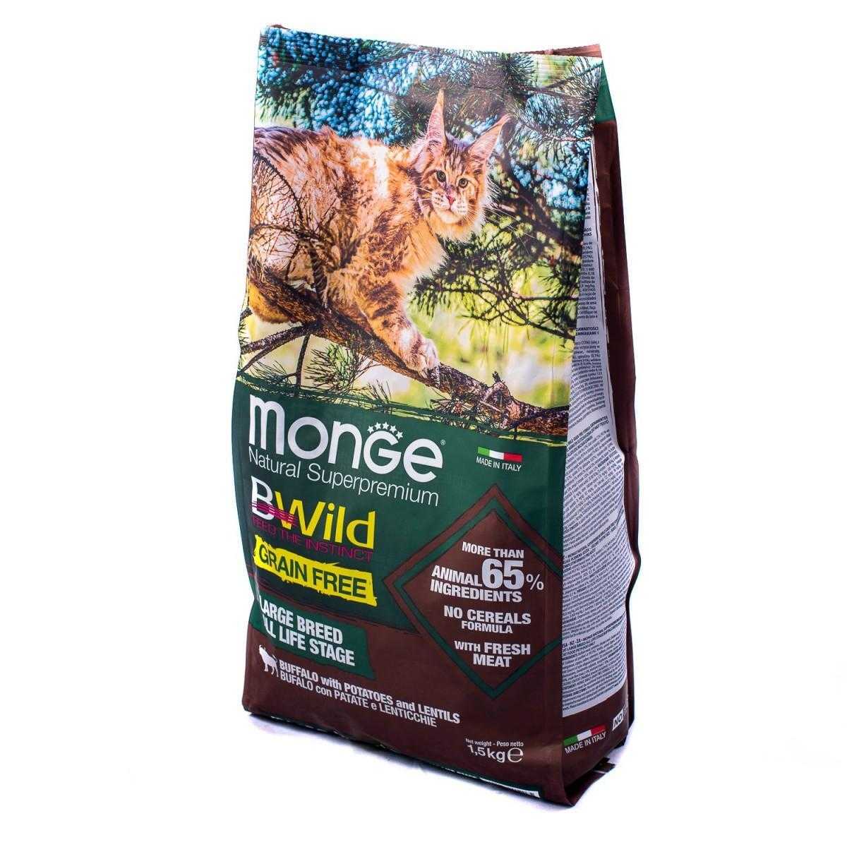 Bwild Сat Large Breed All Life Stage – уникальная линейка кормов от итальянского производителя – инновационная разработка с увеличенным содержанием натурального мяса – для представителей крупных кошачьих пород, таких как мейн-кун. Задача Bwild Grain Free – обеспечить питание, схожее с рационом в природной среде. Гипоаллергенный беззерновой продукт не содержит красителей, усилителей вкуса, консервантов. Серия Bwild Grain Free предназначена в качестве полнорационного варианта для взрослых и стареющих особей. При повышенном содержании белка в корме количество углеводов было снижено до минимума в соответствии с естественными потребностями мейн куна. Это позволяет крупнопородным котам оставаться в превосходной физической форме.