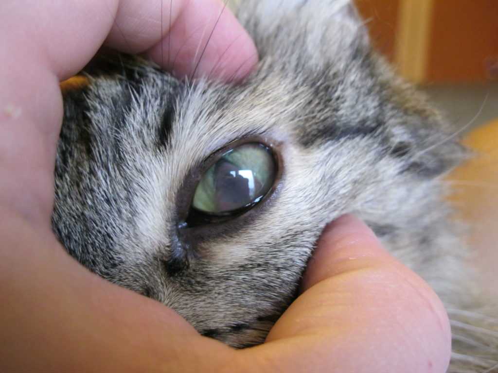 Следует обратить внимание на беспокойное поведение питомца, ухудшение общего самочувствия вялость. Появляется светобоязнь, истечения из глаза