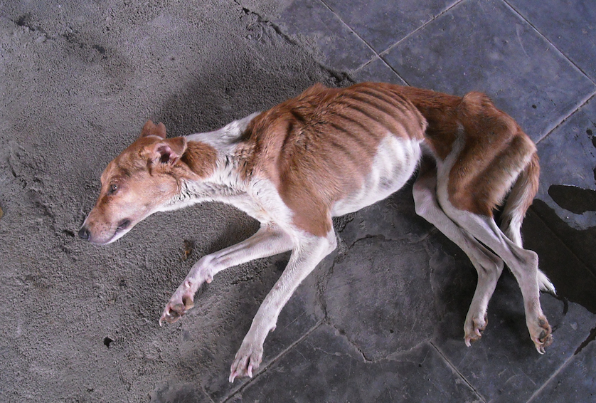 Кормят больных питомцев внечале через вену (питательные растворы глюкозы), или же посредством введения катетера прямо в желудок. Самостоятельно пес есть или не хочет, или же вообще не может. После улучшения его состояния, животного переводят на легкие, но питательные диеты из насыщенных бульонов и отварной курятины.