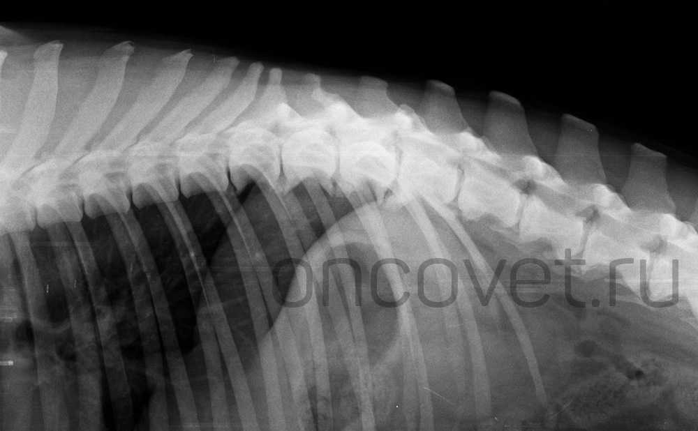 Рис. 2. Дискоспондилит у собаки Th9- L4.