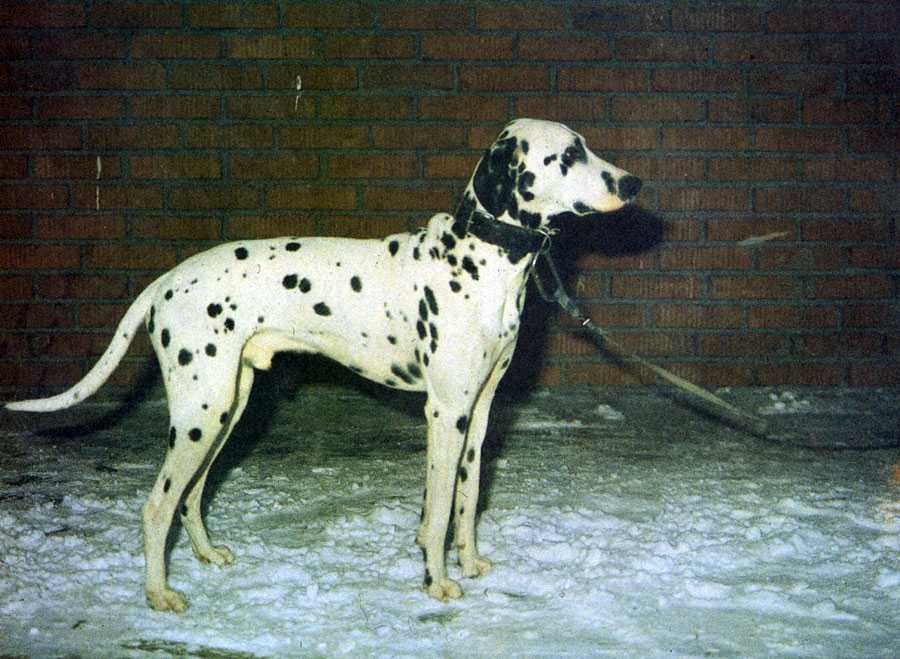 Далматин — выносливая собака, легко привыкающая к любому климату. Рост ее 55-60 см.