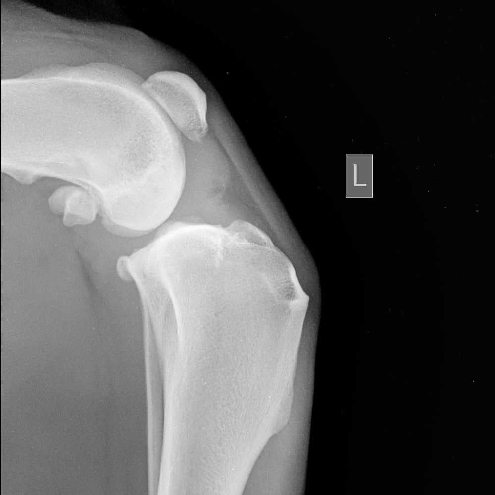 Боковая рентгенограмма при хроническом течении разрыва ПКС у алабая