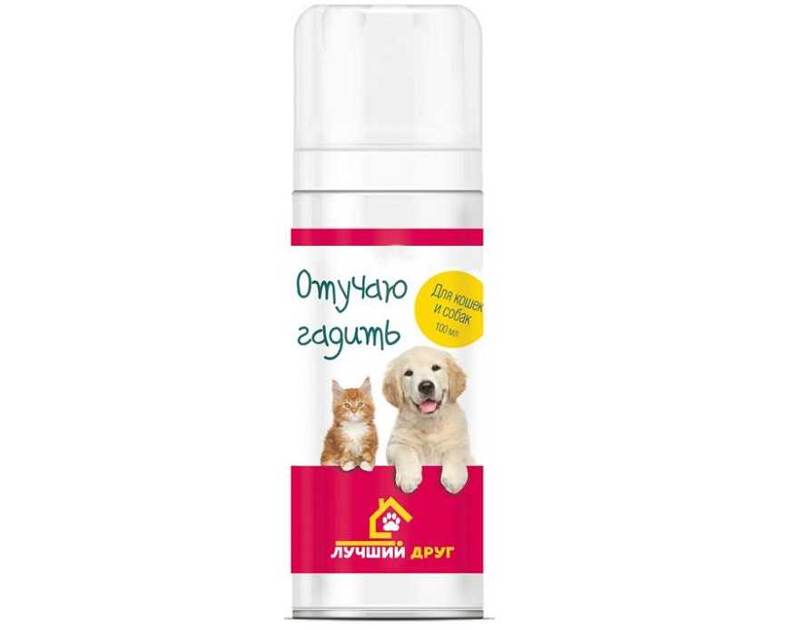 Спрей Лучший друг «Отучаю гадить» (100 мл). Основной компонент спрея — это масло апельсина, запах которого не нравится собакам. Эффект состоит в том, что определенные ферменты разлагают биологический субстрат, определяющий запахи кала и мочи. Стоимость — примерно 250 рублей.