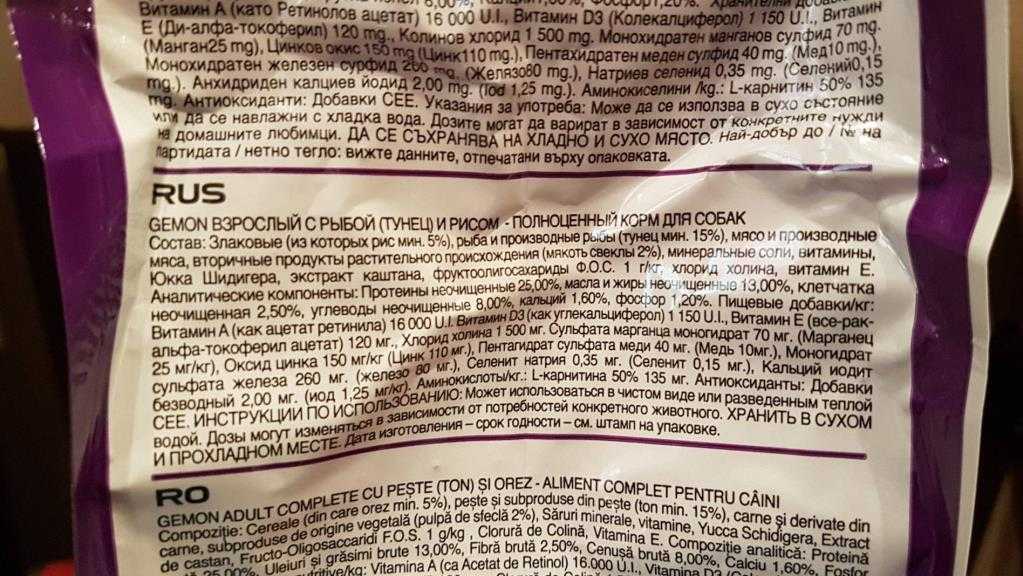 Состав корма Gemon