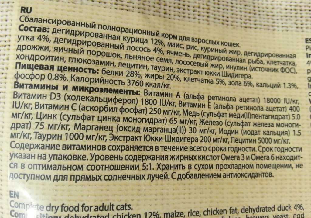 Интересно, что в некоторых вариантах в английском описании состава первый ингредиент «chicken meal», то есть «мука из курицы», в то время как в переводе на русский указано «мука из мяса курицы». Недобросовестный перевод импортера?