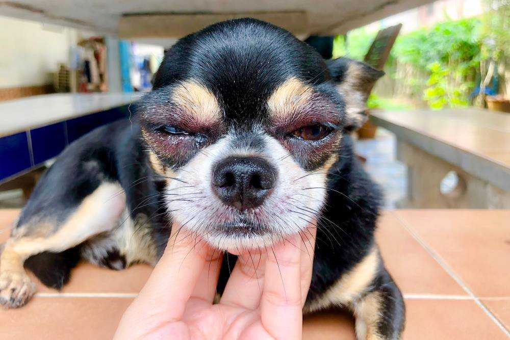 В особо сложных проявлениях аллергии, у собаки может внезапно развиться отек Квинке. Выражается он так: