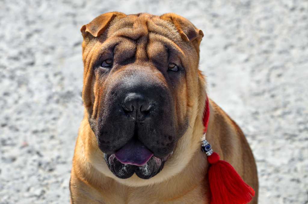 Патологическое выпадение глаз провоцирует особенность строения шкуры. Крупные и мелкие складки кожи мешают полноценному развитию черепа, что часто приводит к появлению косоглазия и заворота век. Владельцам шарпеев следует быть осторожными при держании питомца за воротник или ведении его на поводке.