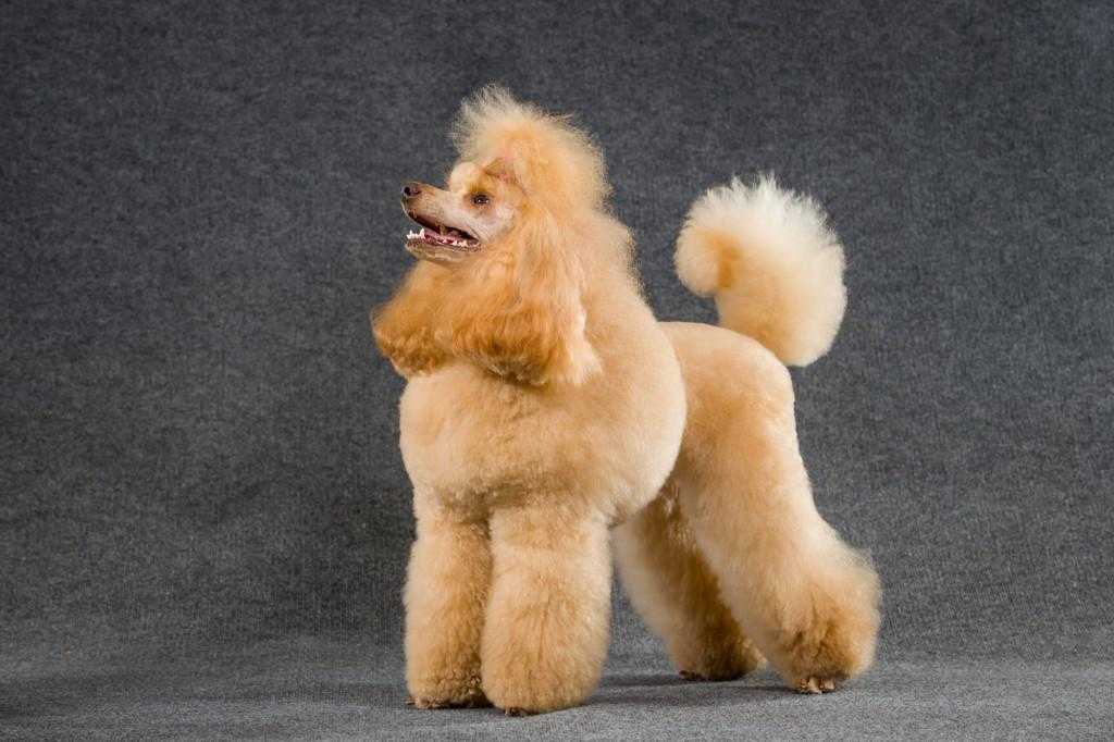 - кудрявый пудель имеет тонкую структуру волоса, с хорошим завитком; шерсть густая и эластичная, равномерной длины;