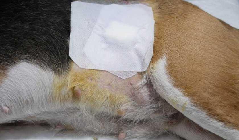 Если пес постоянно вылизывает швы, использовать елизаветинский воротник.