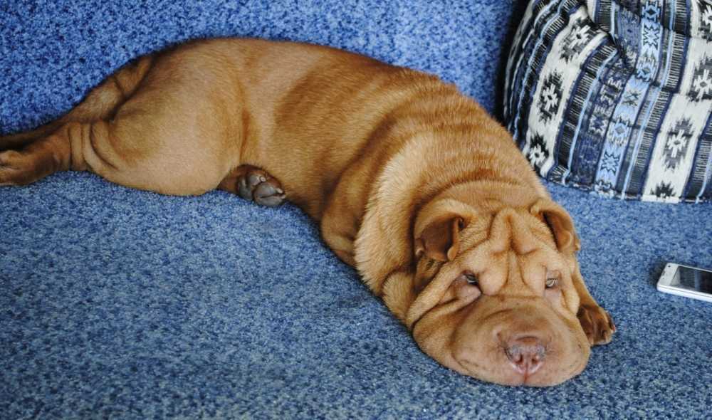 Шарпей подстраивается под режим хозяина: он может целый день лежать на диване вместе с владельцем или сопровождать его на долгой прогулке.