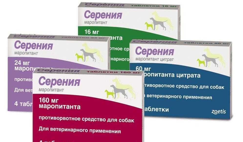 В большинстве случаев таблетированная форма Серении рассматривается в качестве противорвотного препарата для собак. Однако ветеринары назначают ее и кошкам. В зависимости от концентрации маропитанта в продаже доступно 4 разновидности таблеток. Котам подходят 2 варианта с самым низким содержанием компонента — 16 и 24 мг.