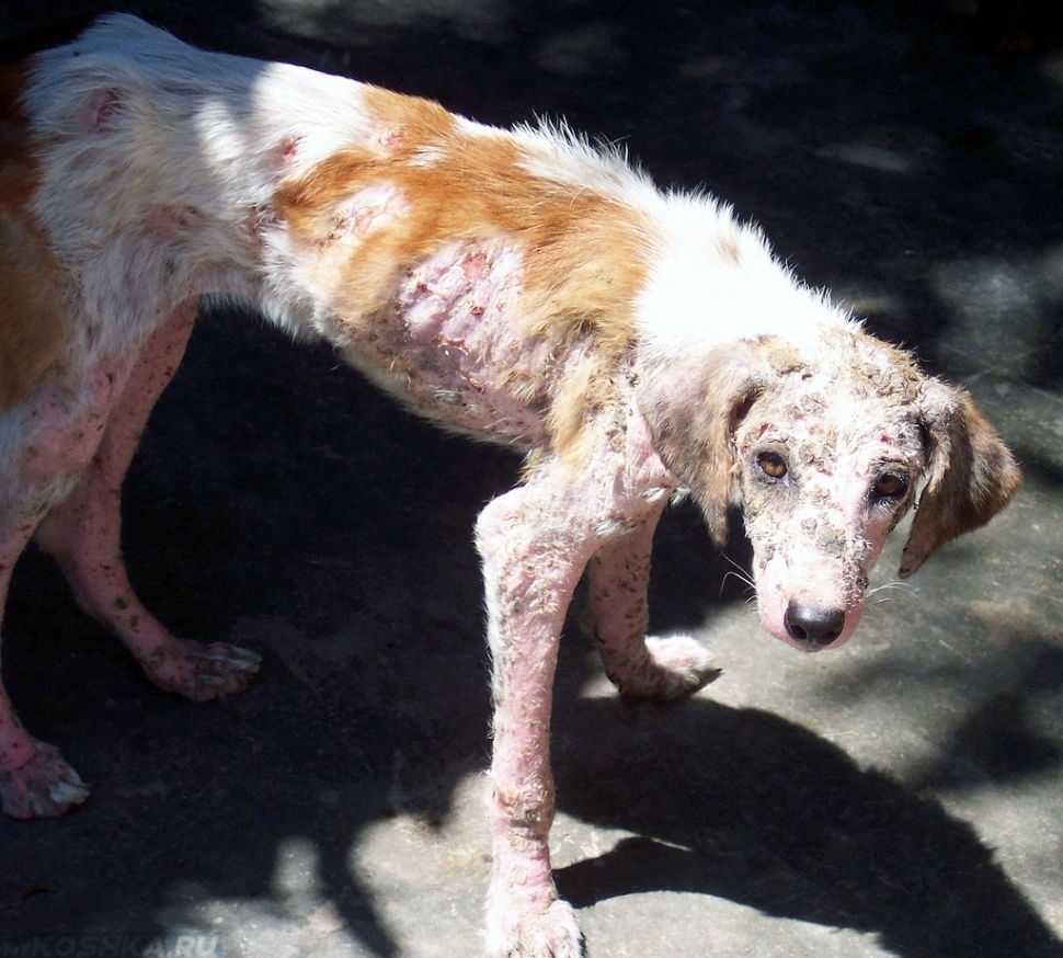 Поражение кожных складок. Этот вид характерен для собак, у которых кожа собрана в складочки. Чаще поражается морда, щеки, лоб, лапы. В складочках кожа преет, воспаляется, неприятно пахнет.