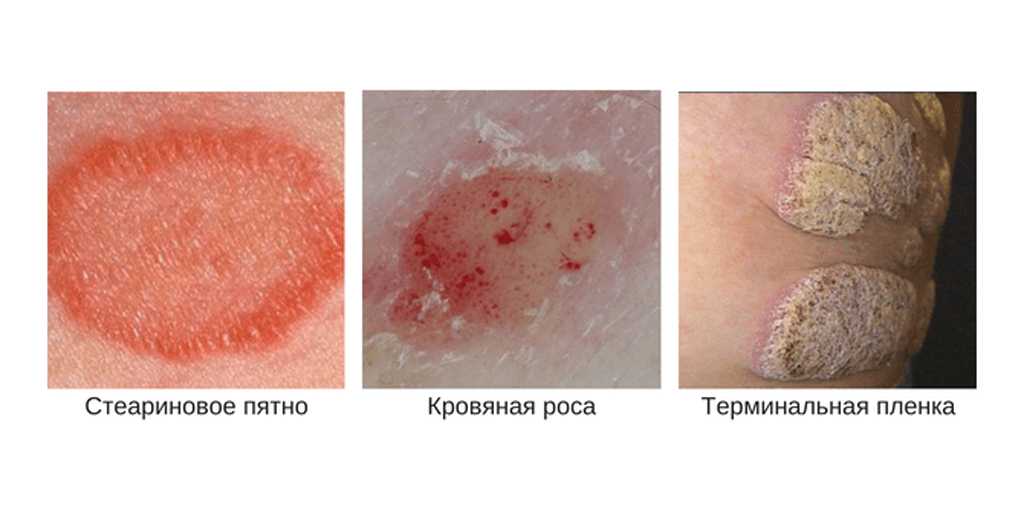 - феномен точечного кровотечения — при полном соскабливании папул появляются мелкие капельки крови, напоминающие росу.