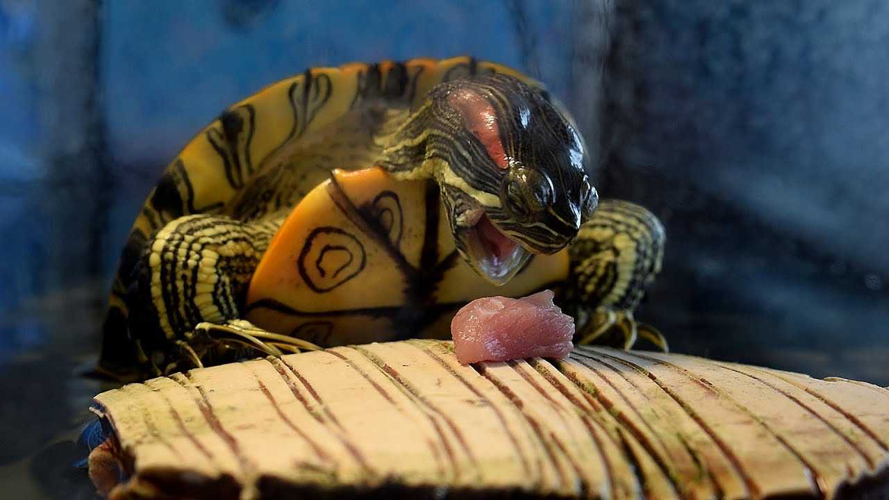 Сколько раз кормить красноухую черепаху? Хотя черепахи все время проводят в поисках пищи, раскапывая грунт и переворачивая камни на дне, кормить их следует только один раз в день в одно и то же время. Желательно, чтобы оно совпало с периодом наибольшей активности рептилии. Нужно учитывать, что пищеварение у хладнокровных животных медленное. Кормление производится за несколько часов до ночного сна, чтобы пища успела перевариться.