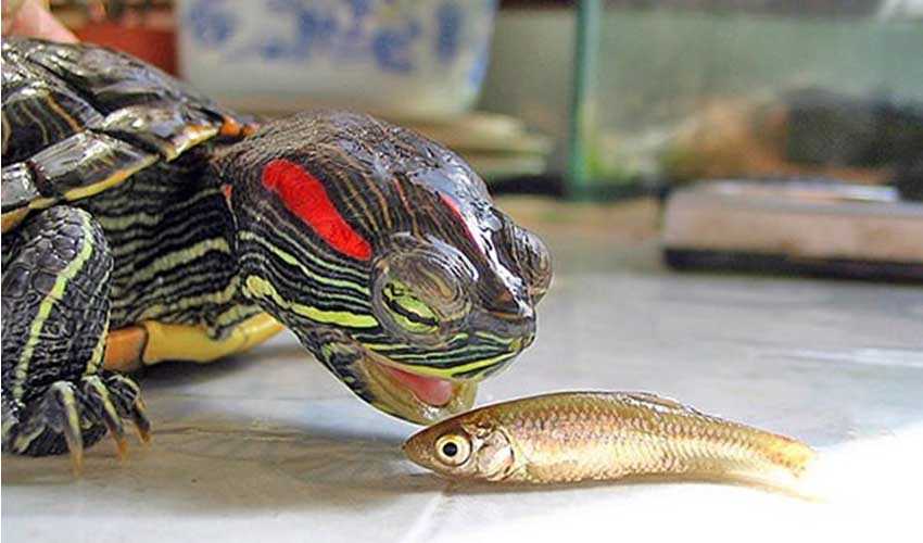 Владельцы красноухой черепахи обязаны понимать, что это водная рептилия, не питающаяся на суше. Рацион должен быть разнообразным, состоять из животной и растительной пищи. Черепашат надо кормить как хищников, взрослых особей – как всеядных.