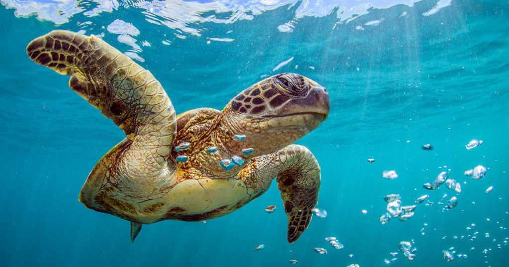 У черепах есть легкие, и они дышат воздухом. Эти животные не потребляют кислород, находящийся в воде, как это делают рыбы. Поэтому им нужно запасать кислород в легких, чтобы оставаться под водой.