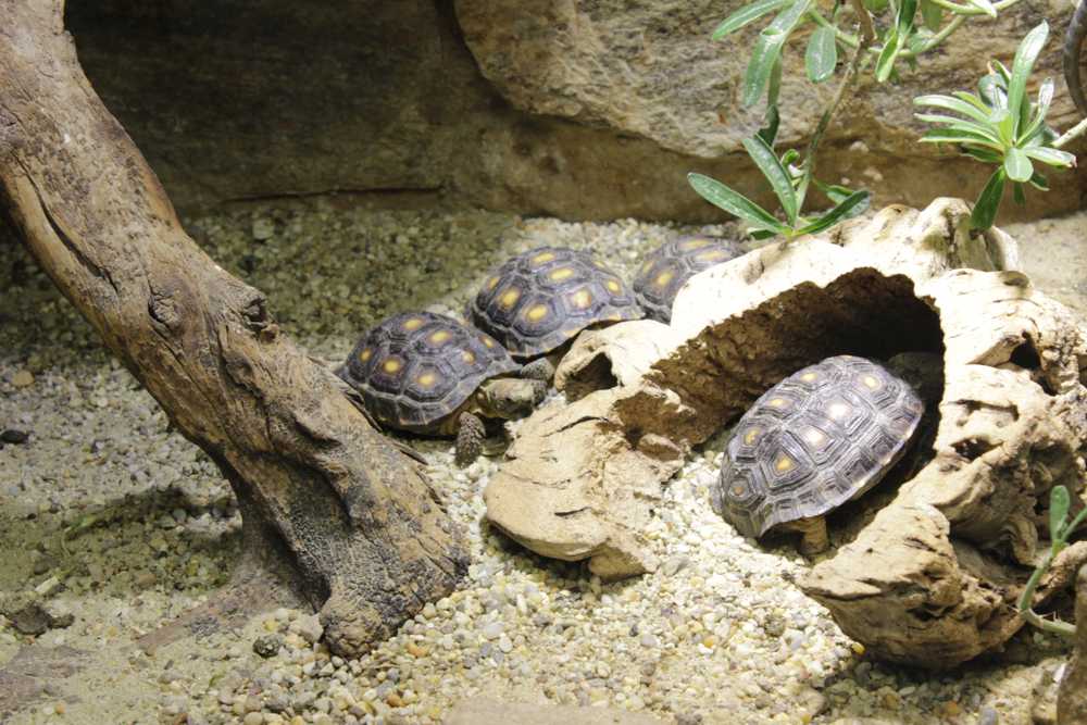 В террариуме для сухопутных черепах обязательна хорошая вентиляция. Отверстия должны быть широкими и располагаться на противоположных стенках, но на разном уровне — внизу в холодном углу и вверху в теплом.