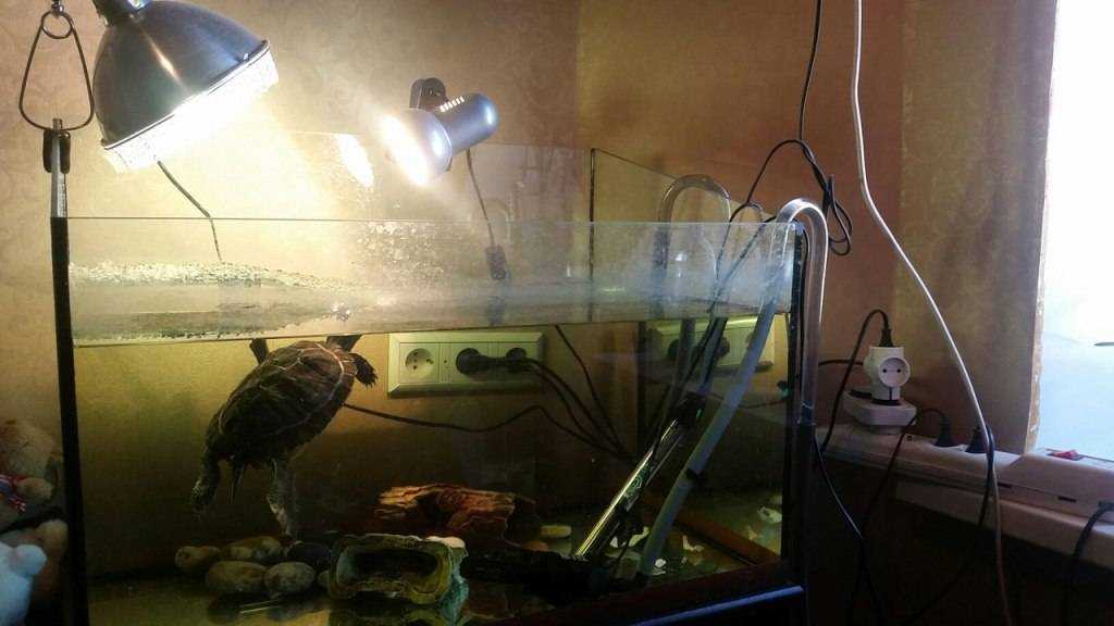 - Освещение аквариума. Если вы пользуетесь лампой для черепах, ее нужно выключать ночью.