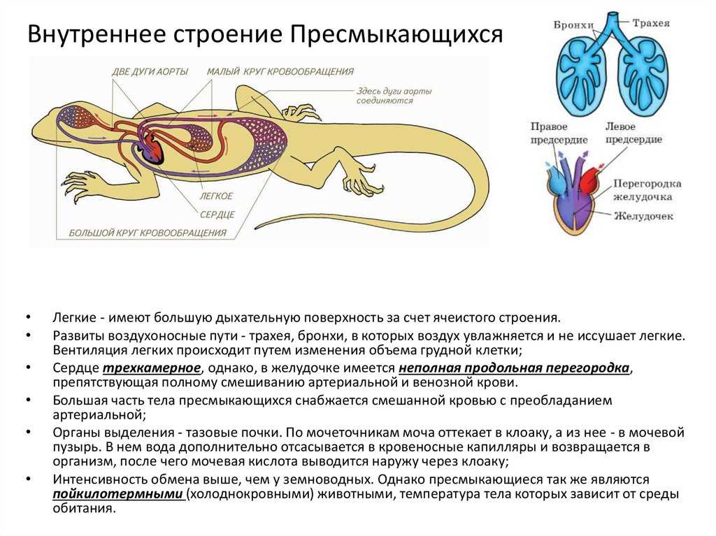 Перейдем к внутреннему строению рептилий, которое по характеристикам похоже на земноводных. Однако есть некоторые отличия.