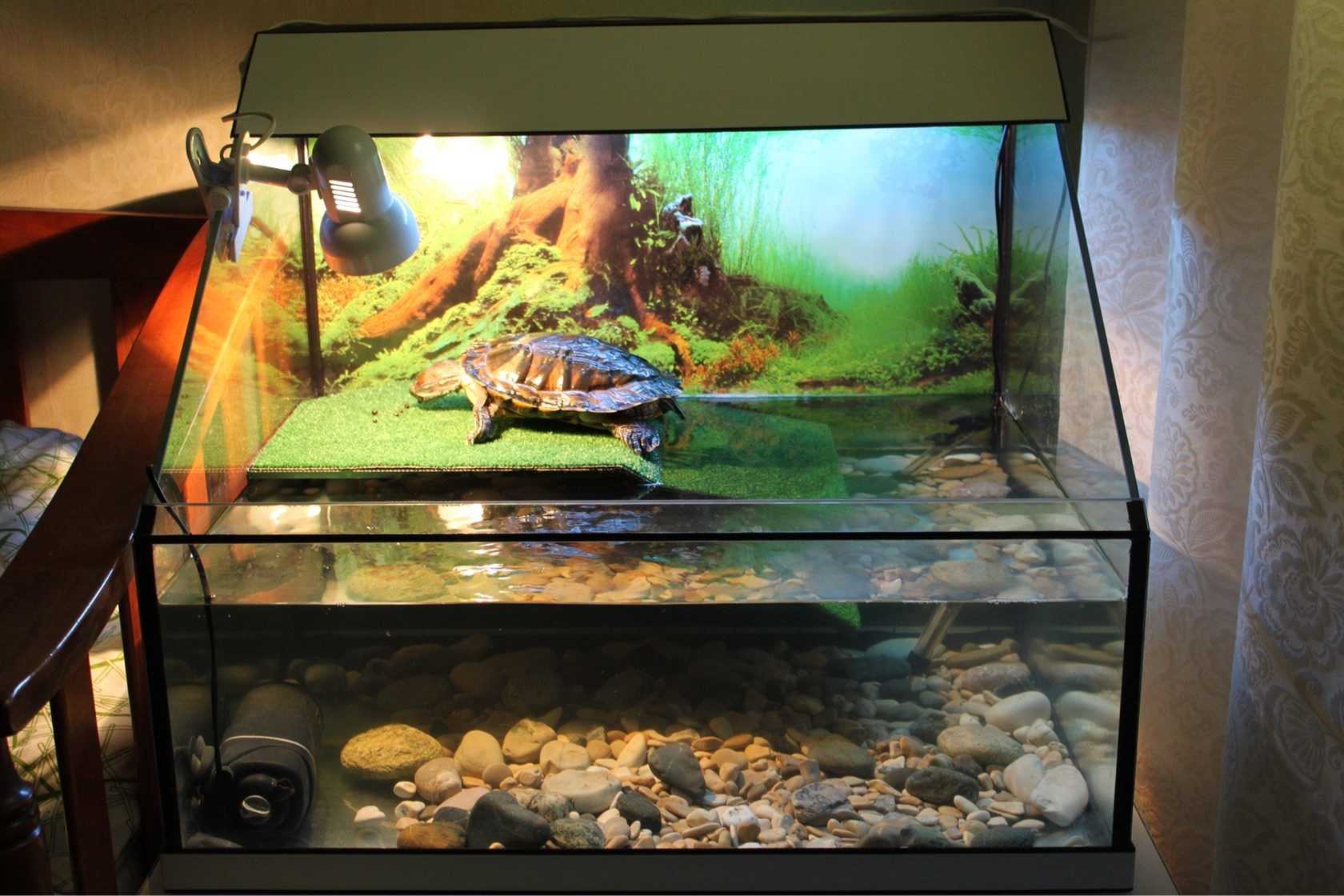 Независимо от вида черепахи каждый аквариум необходимо правильно оборудовать. Жилище рептилии должно как можно лучше соответствовать естественным условиям ее жизни. Но от вида черепахи будут зависеть индивидуальные особенности обустройства ее жизненного пространства. Черепахи не отличаются чистоплотностью и загрязняют воду остатками пищи и экскрементами.