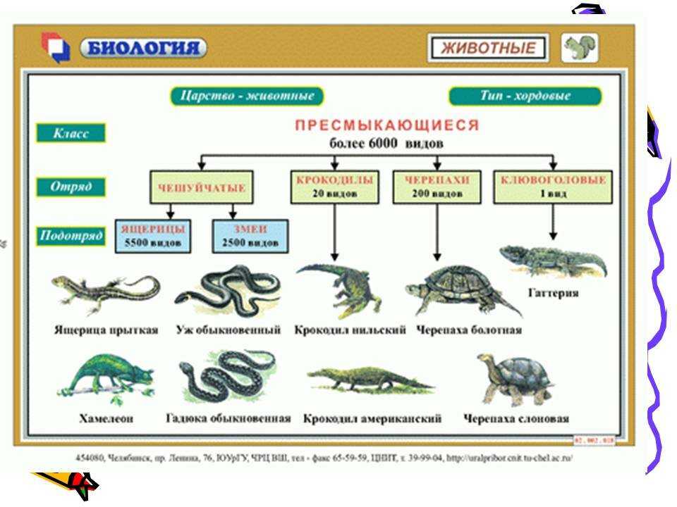 Общий план строения рептилии напоминает хвостатых амфибий, с которыми мы столкнулись на предыдущем уроке. По внешнему строению рептилии очень разные: