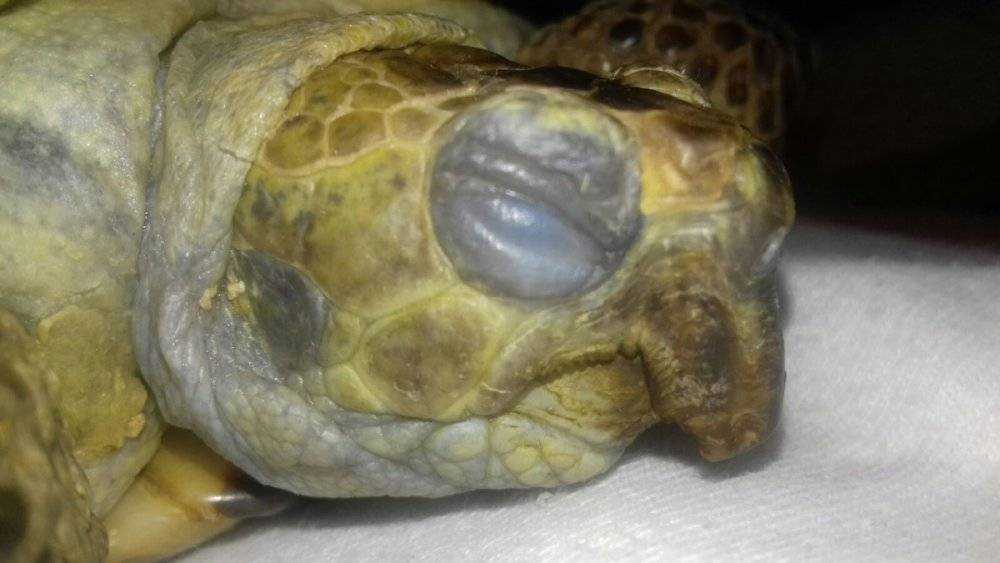 - Поражение глаз черепахи инфекцией бактериального происхождения.